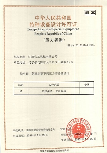 公司先有工程技術人員153人,其中具有中級以上職稱27人,高級工程師8人,工程師28人,廠內設有6個生產車間(5個容器車間、1個機加工車間),7個科室,同時設有化機設計研究所和理化檢測中心,具有一、二、三類壓力容器設計許可證和一、二、三類壓力容器制造許可證,并通過ISO9001國際質量體系認證。